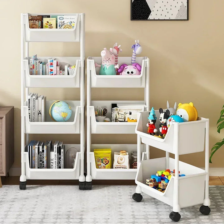 Organize your home efficiently with this Portable Trolley Bookshelf, a movable storage rack designed for versatility and convenience. Made from durable PE and PP plastic materials, this large-capacity bookshelf features smooth-rolling wheels that allow easy movement, making it perfect for storing books, toys, kitchen items, bathroom essentials, and more.